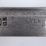 Die Klinge ist gestempelt mit „G R“ unter Krone, der Nummer 27 sowie einer Herstellermarke „YL&C“ (YL&Co?). Symmetrischer Griffschutz aus Stahlblech. Griffschalen aus Holz.