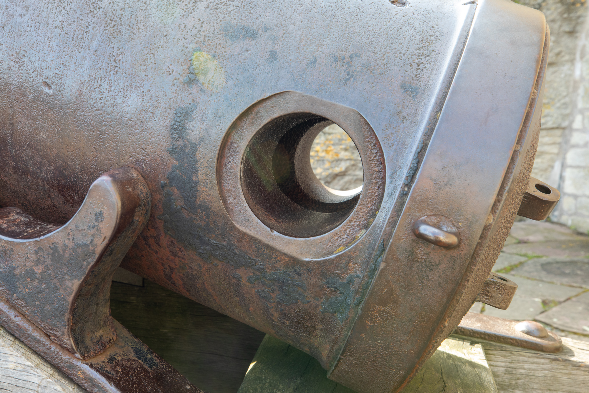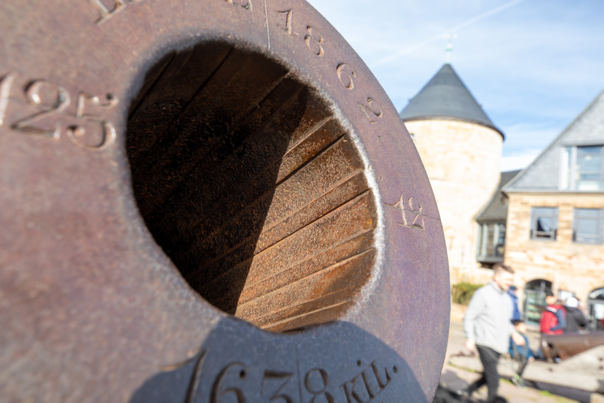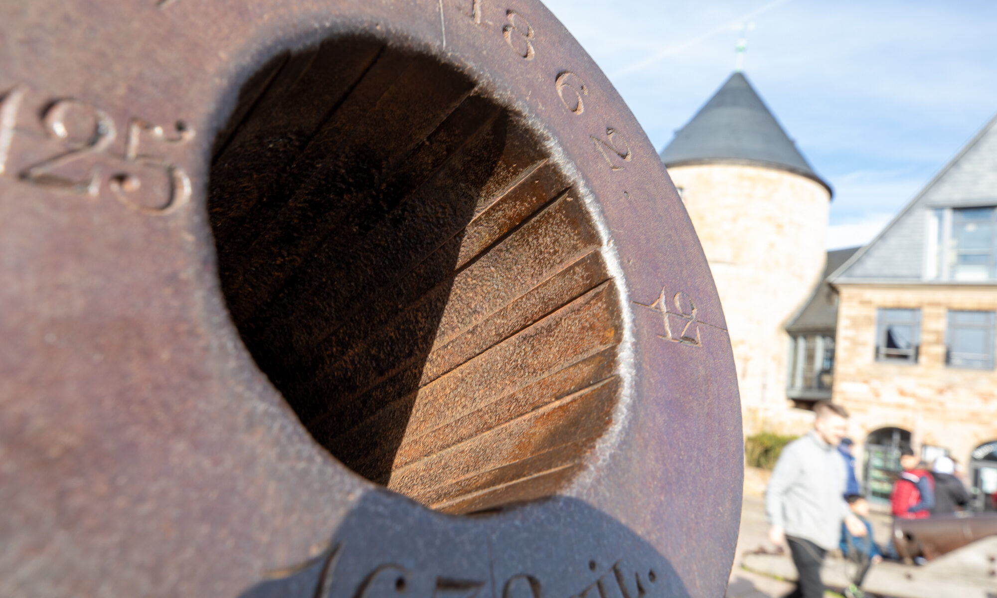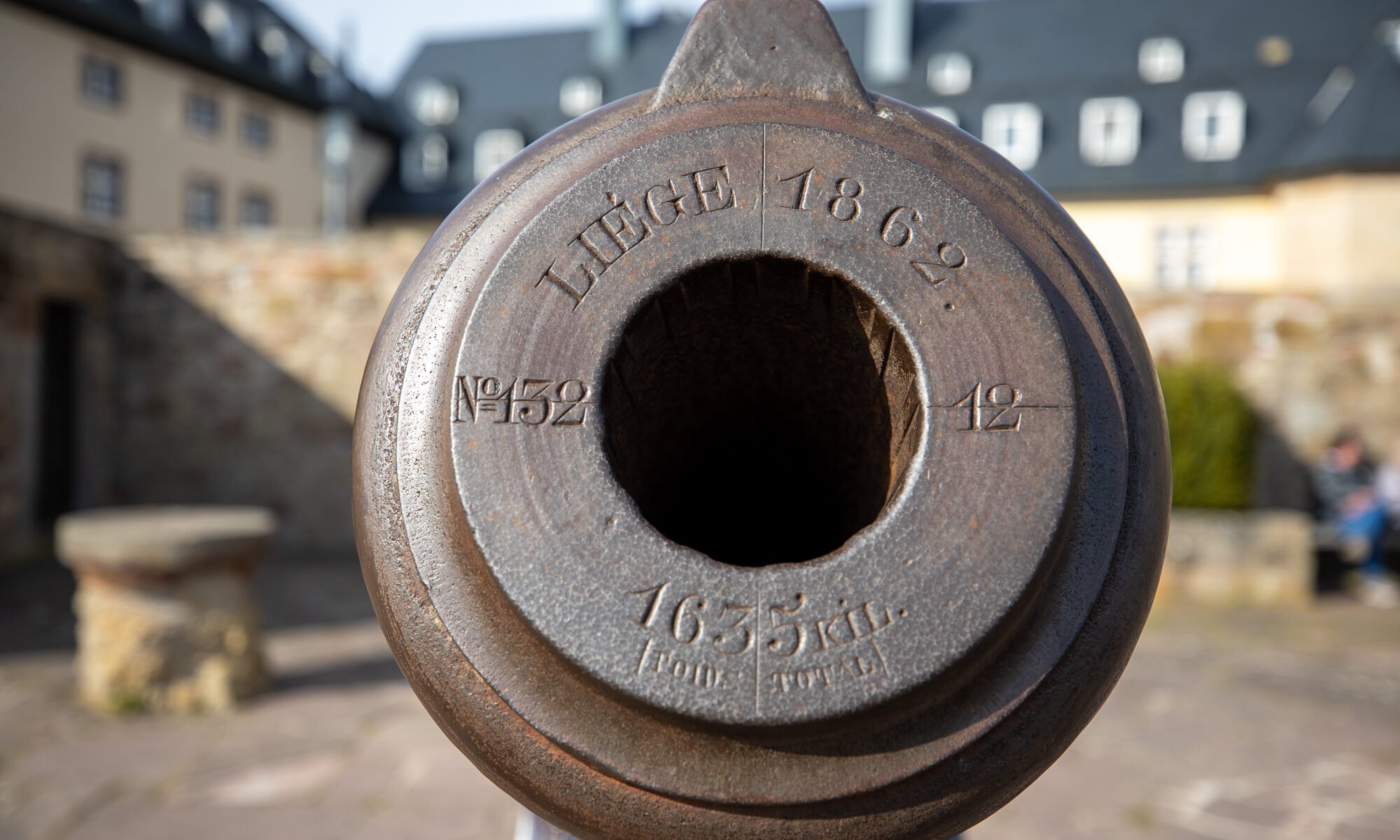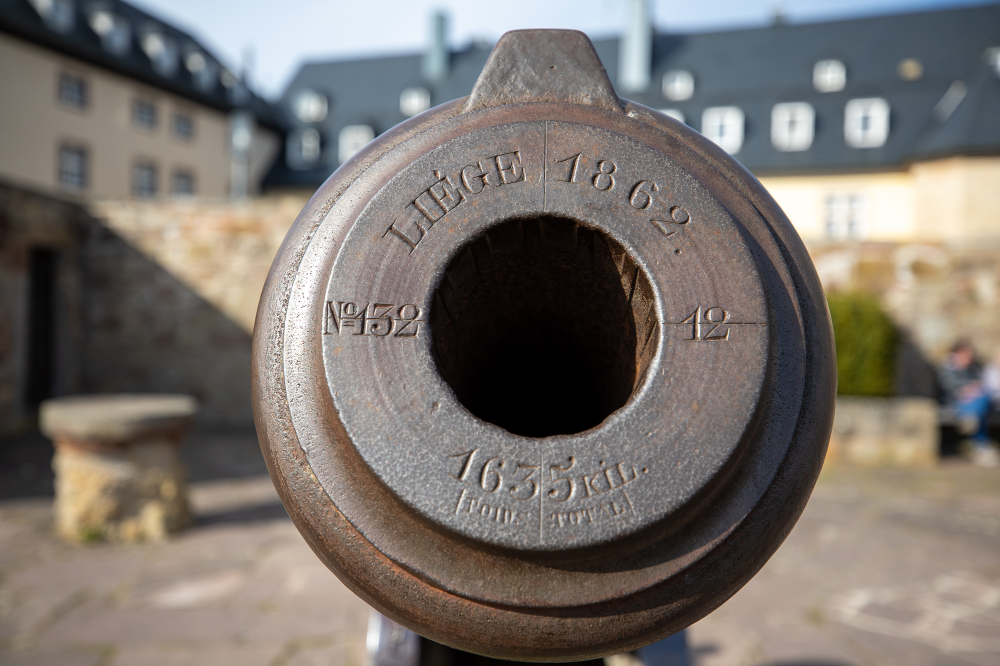 High above the artificial Eder-Lake in Hessia sits Schloss Waldeck, a castle that dates back to the 12th century. On the terrace are two unusual cannon on display.