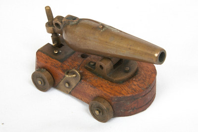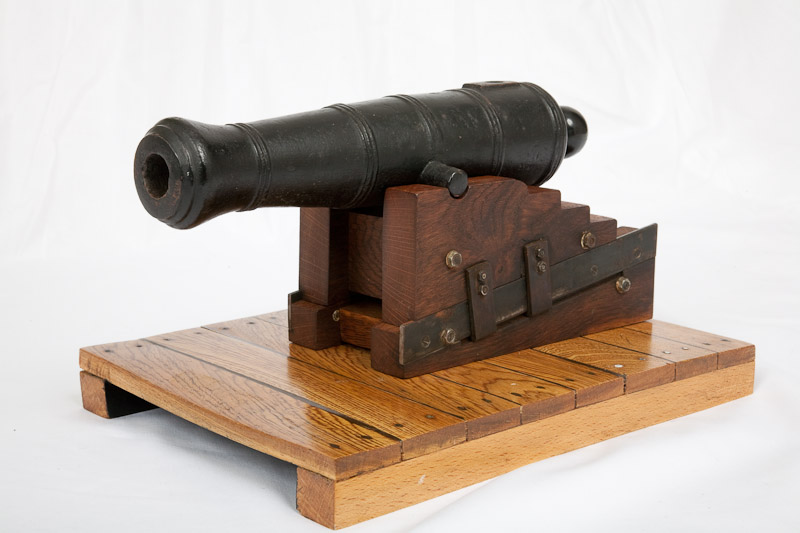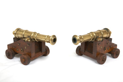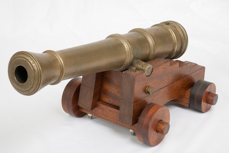 Cannon Fine pair of brass model cannon. Item H079. 2.000EUR. Iron model cannon on a fortress carriage. Item H227. 800EUR. Superb small bronze cannon. Item H328. 3.000EUR. Seven small toy and model cannon. Item H234. 250EUR. Nelson-era anti-rigging shot. Item G069. 3.500EUR. 20th century replica of a ship’s cannon. Item A262. 800EUR. A decorative 19th ct. bronze cannon. Item A257. 3.000EUR. Gun emplacement for a ship’s cannon. Item A288b. 2.000EUR. Model cannon with bronze barrel. Item H106. 1.000EUR. Small bronze lantaka. Item H078. 850EUR. Bronze model cannon with complete deck assembly. Item H085. 1.300EUR. 19th century bronze signal cannon. Item H236. 1.200EUR An 18th century British iron cannon, calibre 1lb. Item A343. 3.000EUR. Asian-European bronze cannon. Item A370. 10.000EUR.